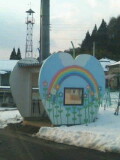 温泉行く途中にあったりんごのバス停。かわいいなあ。